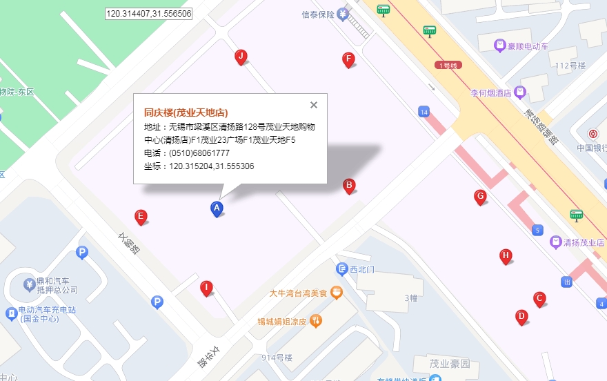 江苏省无锡市梁溪区清扬路茂业天地5楼js1996旁